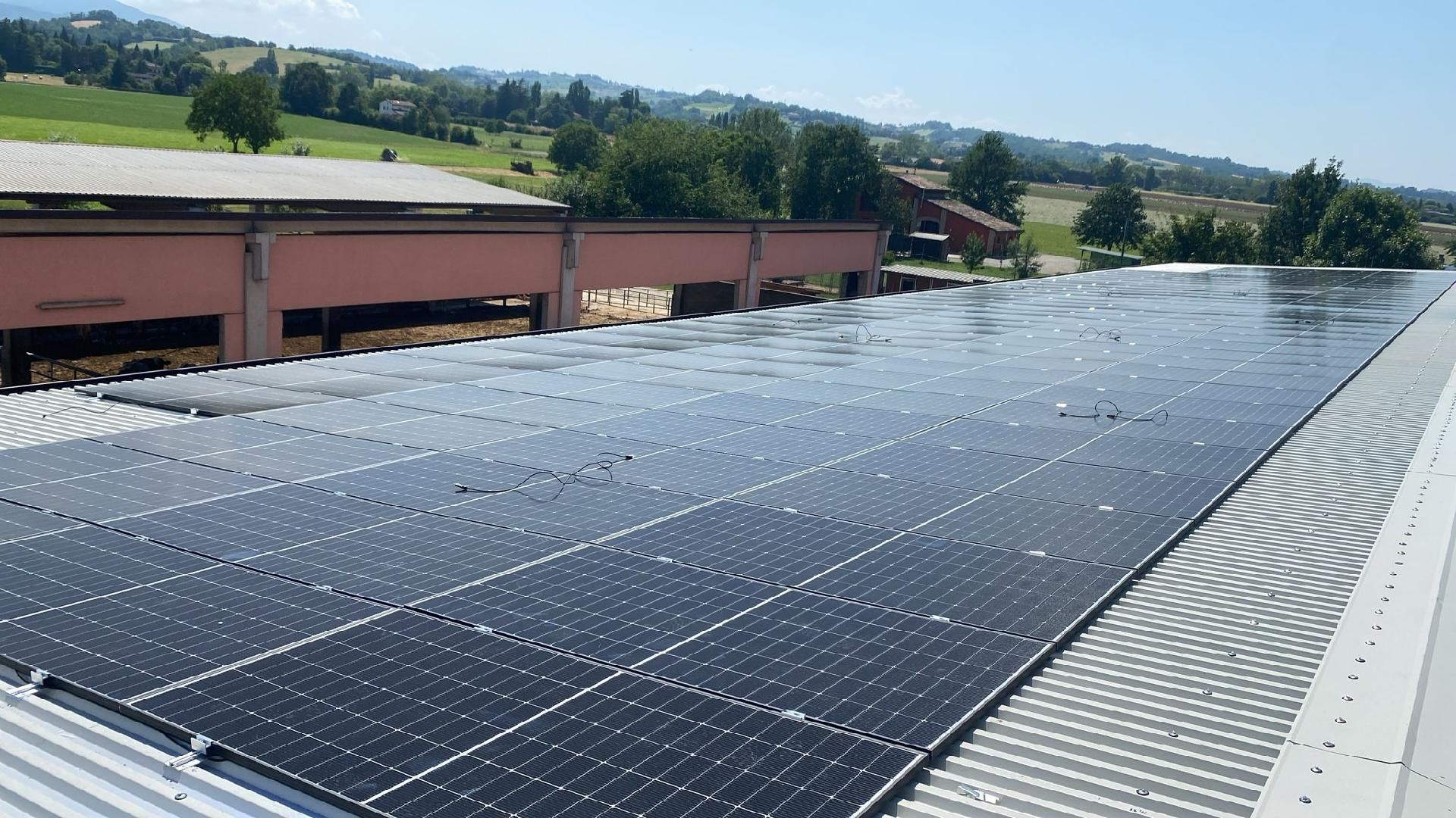Fattoria Cotti S.S.A., azienda specializzata nell’allevamento di vacche da latte per la produzione di Parmigiano Reggiano, ha realizzato un impianto fotovoltaico con potenza di picco di 106,55 kWp presso il proprio stabilimento. L’ intervento ha previsto una prima riqualificazione della copertura delle due stalle, sulle quali è stato successivamente installato l’impianto fotovoltaico. Sono state previste opere per la rimozione e smaltimento del manto di copertura in cemento-amianto e l’installazione di un nuovo strato impermeabilizzante in lastre metalliche. L’intervento è stato progettato per produrre in sito l’energia elettrica necessaria alla copertura del fabbisogno annuale, riducendo i costi energetici e contribuendo alla diminuzione delle emissioni di CO₂.